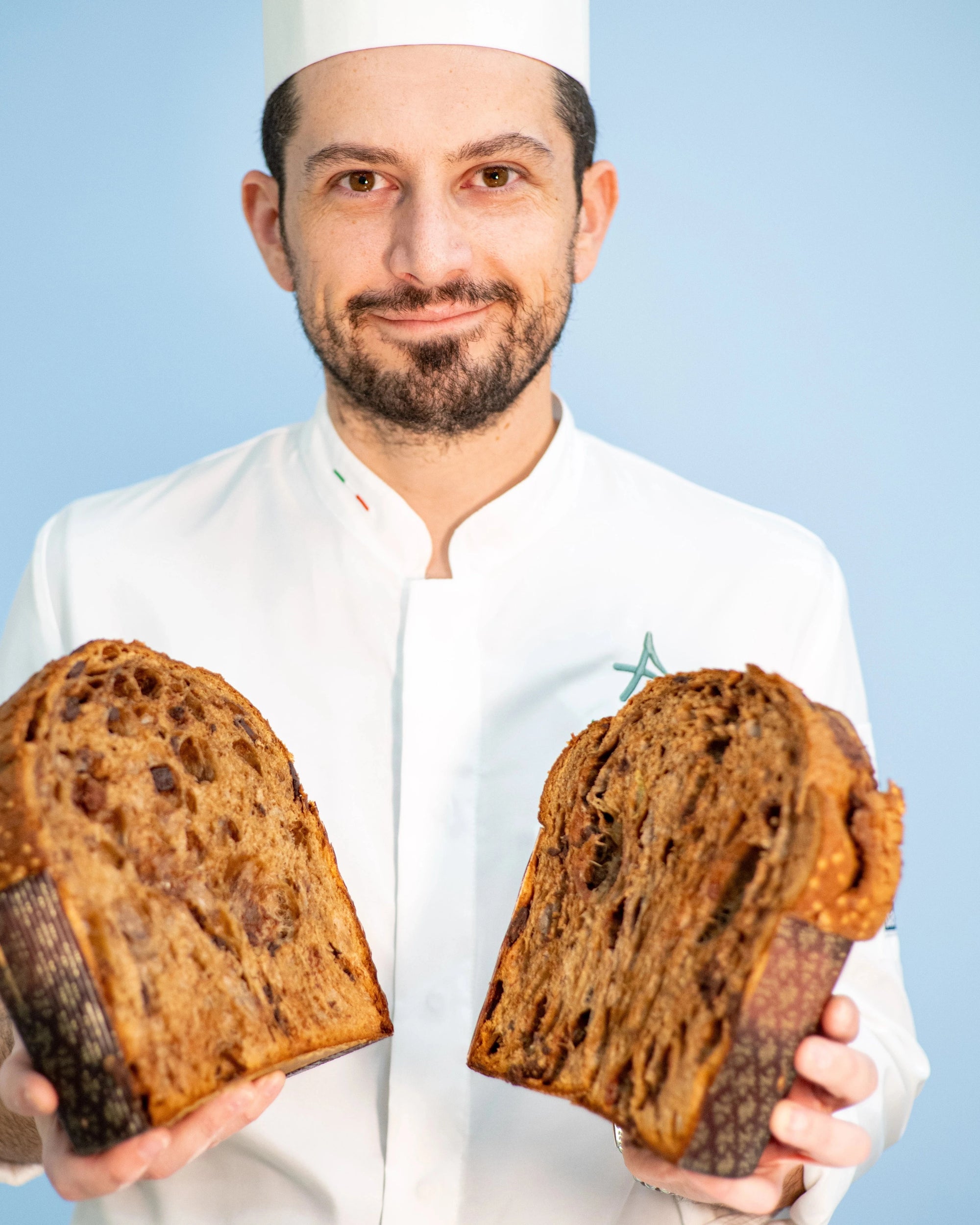 I suoi panettoni, premiati a livello internazionale, si distinguono per la struttura aperta e regolare, il profumo equilibrato di arancio, vaniglia e una nota di fermentazione, che diventa l’essenza distintiva del suo lavoro.